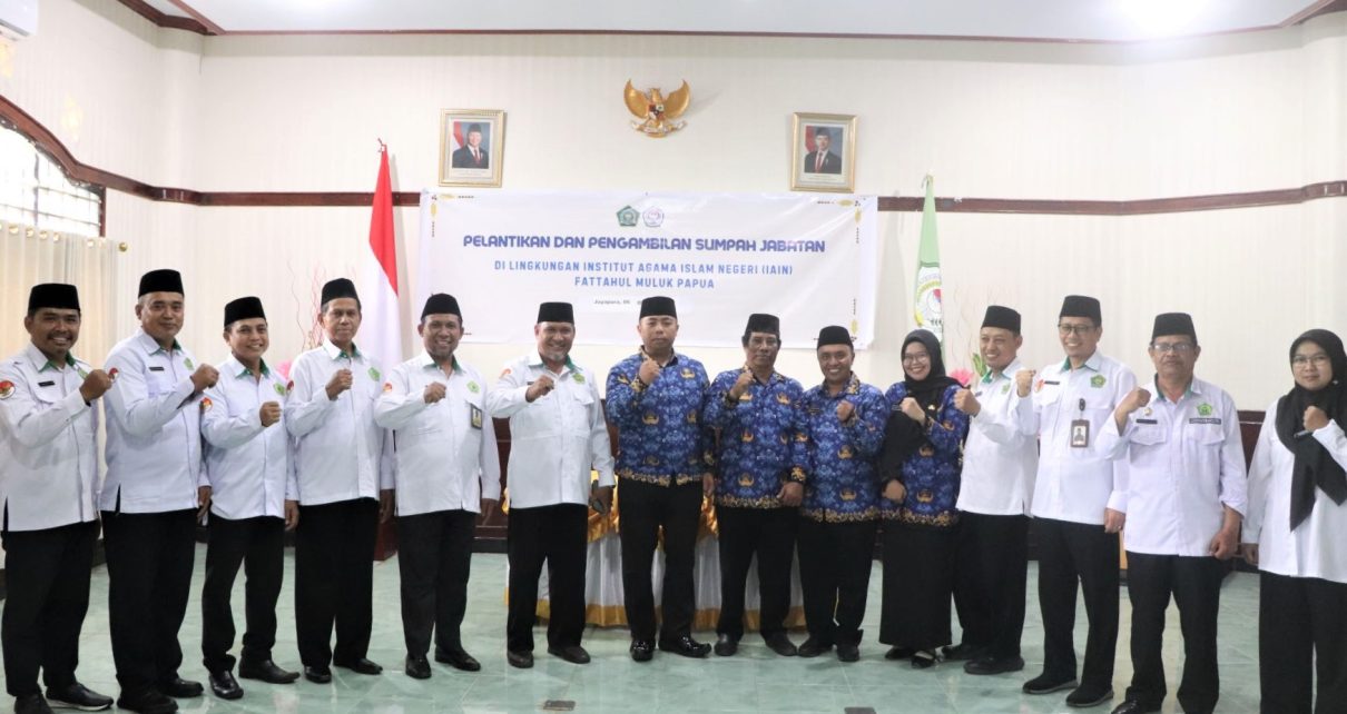 (iainfmpapua.ac.id) – Pejabat yang telah dilantik harus menjalankan tugas pokok dan fungsi (tupoksi) dengan penuh tanggung jawab. Rektor Institut Agama Islam Negeri (IAIN) Fattahul Muluk Papua, Dr. H. Marwan Sileuw, S.Ag, M.Pd menyampaikan hal ini dalam ‘Pelantikan dan Pengambilan Sumpah Jabatan di lingkungan IAIN Fattahul Muluk Papua’, di gedung rektorat, 6 Oktober 2025. Menurutnya, penganugerahan
