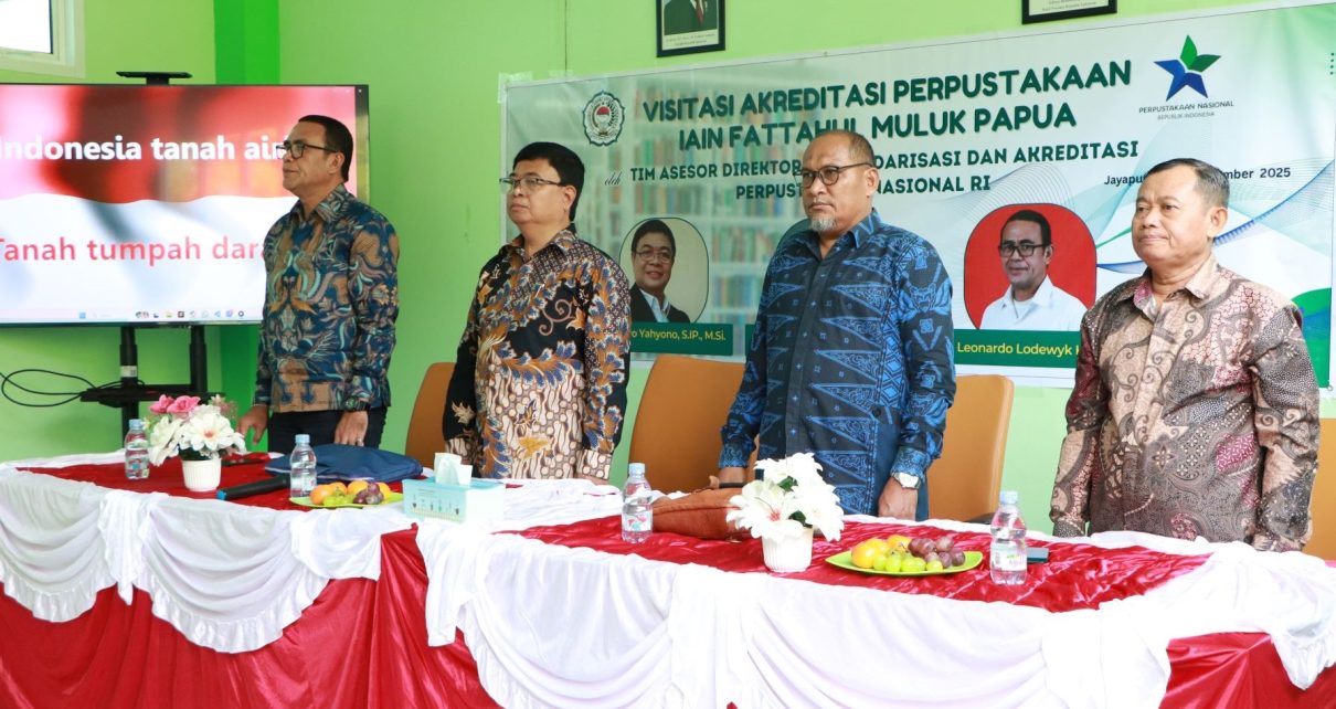 (iainfmpapua.ac.id) – Perpustakaan berperan mewujudkan transfer ilmu ke masyarakat. Direktur Standardisasi dan Akreditasi Perpustakaan Nasional RI Dra. Made Ayu Wirayati, M.I.Kom menyampaikan hal ini dalam sambutannya pada ‘Visitasi Akreditasi Perpustakaan’ di Ruang Serbaguna Perpustakaan Institut Agama Islam Negeri (IAIN) Fattahul Muluk Papua, Jalan Merah Putih, Buper Waena, Kota Jayapura, 5-6 November 2025. Pihaknya memberikan apresiasi