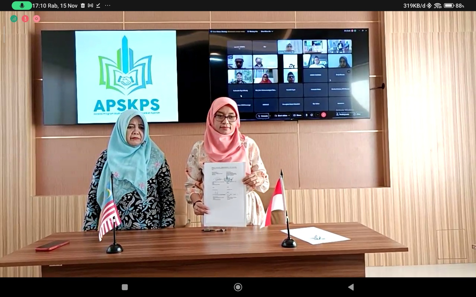 (iainfmpapua.ac.id) – Program Studi Perbankan Syariah Fakultas Ekonomi dan Bisnis Islam (FEBI) Institut Agama Islam Negeri (IAIN) Fattahul Muluk yang tergabung dalam Asosiasi Program Studi Keuangan dan Perbankan Syariah (APSKPS) melakukan penandatanganan nota kesepahaman bersama Universiti Teknologi Mara (UiTM) Malaysia, secara daring, 15 November 2023.
