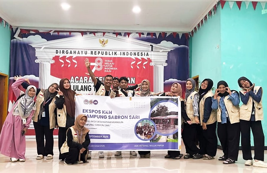 (iainfmpapua.ac.id) – Silaturahmi antara mahasiswa dan warga hendaknya selalu dijaga di manapun berada. Kepala Kampung Sabron Sari Distrik Sentani Barat Kabupaten Jayapura Marwan Hasyim menyampaikan hal ini dalam Ekspose mahasiswa Kuliah Kerja Nyata (KKN) Institut Agama Islam Negeri (IAIN) Fattahul Muluk Papua di aula Kampung Sabron Sari, 1 September 2025.